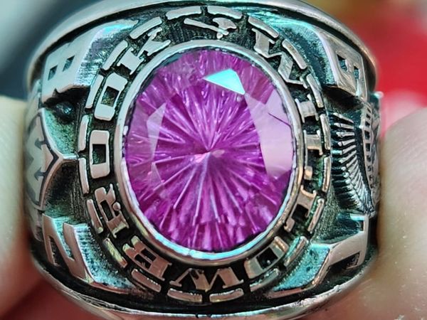 nhẫn mỹ xưa hợp kim HJ ultrium năm 1982- trên cùng là hột hồng tím tia cực kỳ lấp lánh như Ruby cho các bác mệnh Hỏa ra nắng cực kỳ lấp lánh, bao quanh...