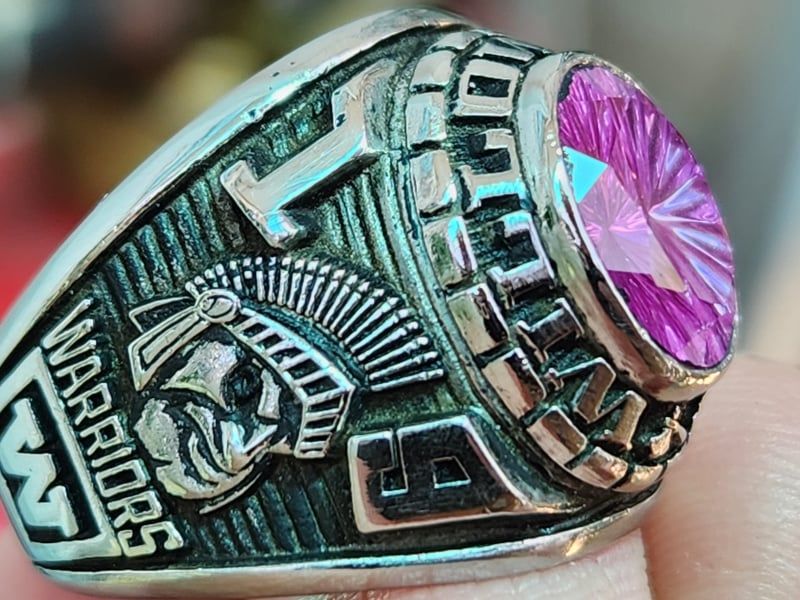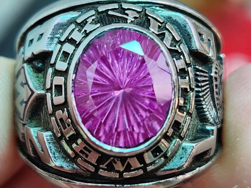 - bên hông phải là logo trường với chữ W và men xanh. nhẫn khắc năm tốt nghiệp 1982