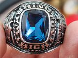nhẫn mỹ xưa Jostens ltm năm 1982- trên cùng là hột xanh biển màu Sapphire với bề mặt và đáy mài đa giác lấp lánh. bao quanh hột là tên trường lừng danh Washington high-...