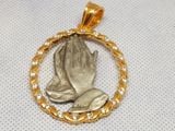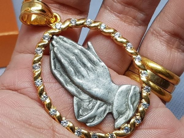 mặt dây chuyền công giáo bạc xi vàng đính đá- chất liệu: hình ảnh "đôi tay cầu nguyện" tuyệt đẹp được đúc bằng vật liệu Pewter cổ kính, xung quanh khung viền bằng bạc xưa cẩn...