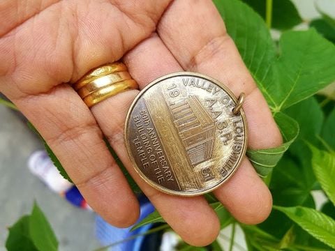 mặt đúc xưa với dòng chữ Peace on earth 1976 Good will toward men chất liệu Stering (bạc xưa) kích thước lớn 41*61mm lên dây thật hoành tráng rất đáng sưu tầm.