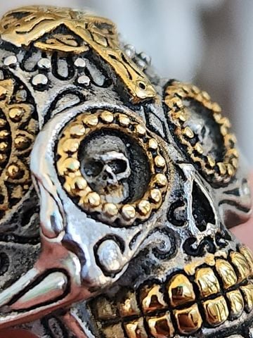 Trên cùng là hột màu xanh mạ non với bề mặt và đáy mài đa giác độc lạ tạo nên ngôi sao năm cánh ngay trong lòng hột , hút sáng tối đa và đẹp long lanh. bao quanh hột là tên trường Panther Valley High School
