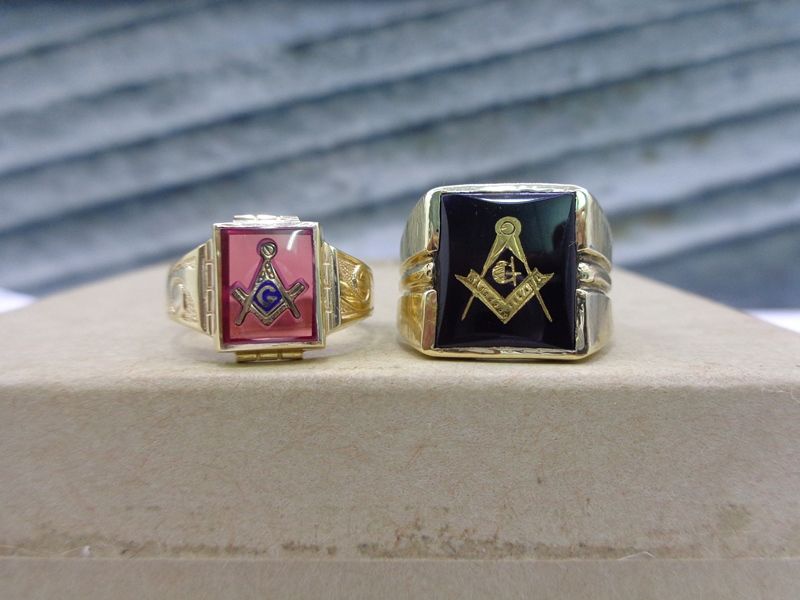 Nhẫn kiểu Masonic vàng 10k2 chiếc một đen một đỏ cho bác nào nhanh tay Thiết kế nhẫn rất sáng tài với đá màu Ruby đỏ tươi và đen Black Oxy với công nghệ chạm khắc...