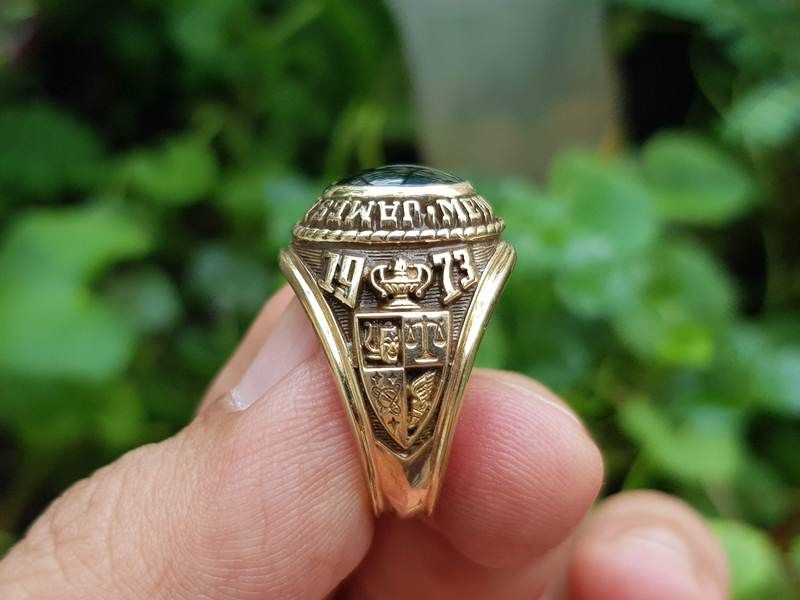 - Bên hông trái nhẫn khắc logo trường với một số kí hiệu về môn học với họa tiết sắc bén tinh tế và năm 1973