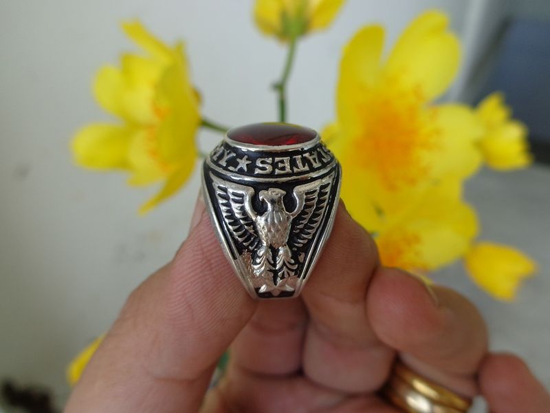 Nhẫn Mỹ Army Crest Craft– Trên cùng là hột đỏ màu Ruby với bề mặt trơn bóng, đáy mày đa giác lấp lánh. Bao quanh hột là dòng chữ United States Army ( lính bộ...