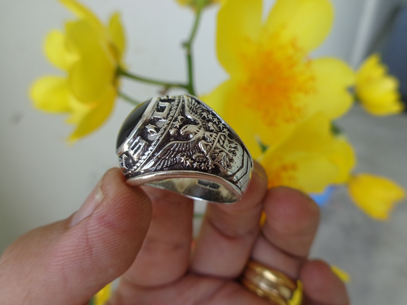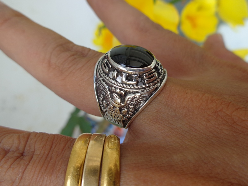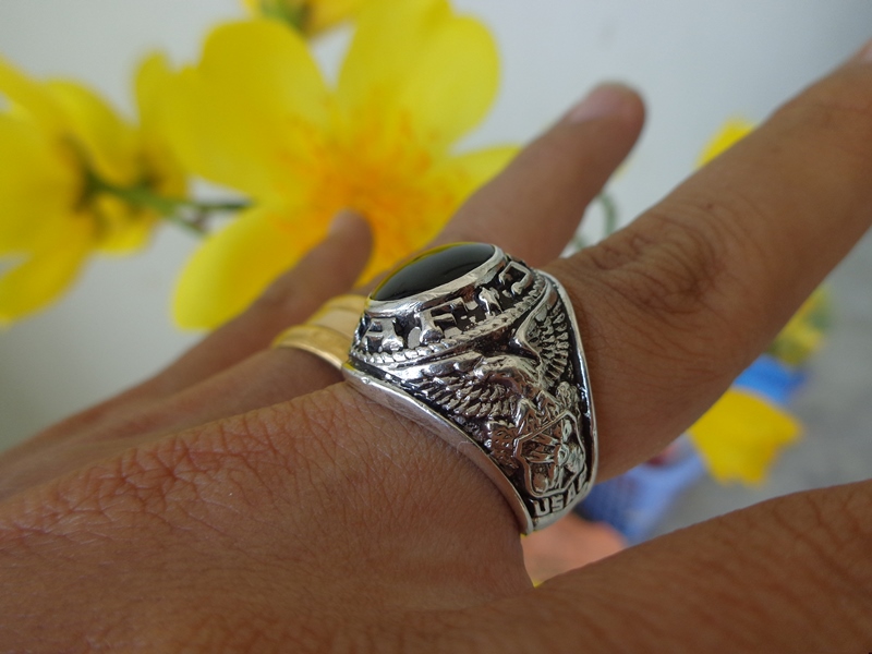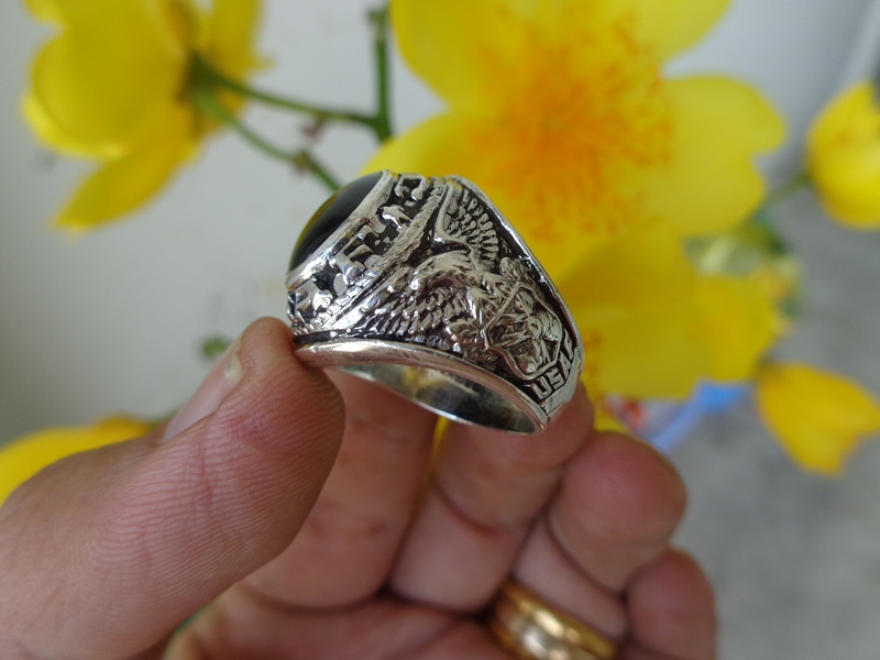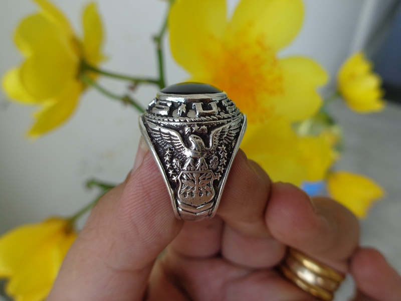 Nhẫn Mỹ Bạc Không Quân USAF SAC– Trên cùng là hột đá đen tự nhiên Black Oxy , bao quanh là dòng chữ USAF SAC viết tắt của United States Air Force Strategic Air Command ( Bộ Chỉ...