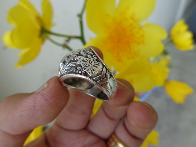 – Bên hông phải nhẫn là hình đại bàng tung cánh với 13 ngôi sao tượng trưng cho 13 bang của Hoa Kỳ lúc bấy giờ