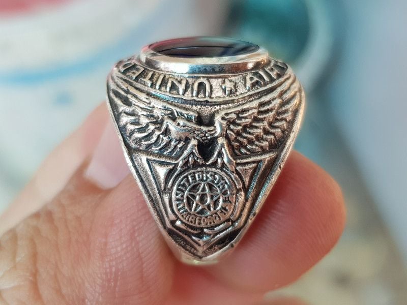 – Hai bên hông nhẫn là hình ảnh đại bàng tung cánh sắc sảo dẫm lên logo Air Force xưa cực kỳ nét