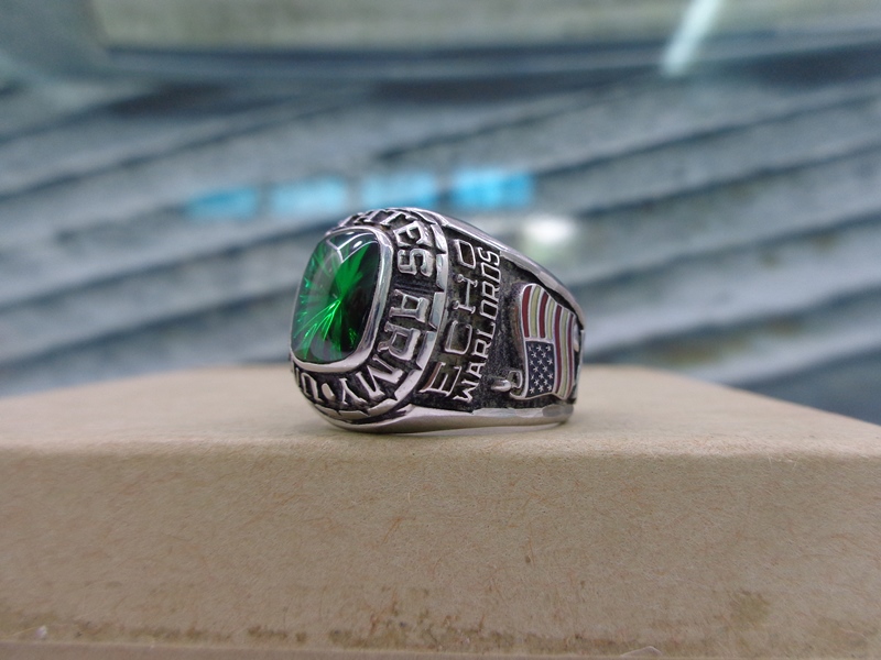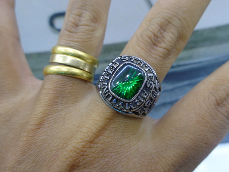 - Trên cùng là hột xanh lá màu Emeral mặt láng đáy tia cực kỳ lung linh, bao quanh hột bởi dòng chữ United States Army.
