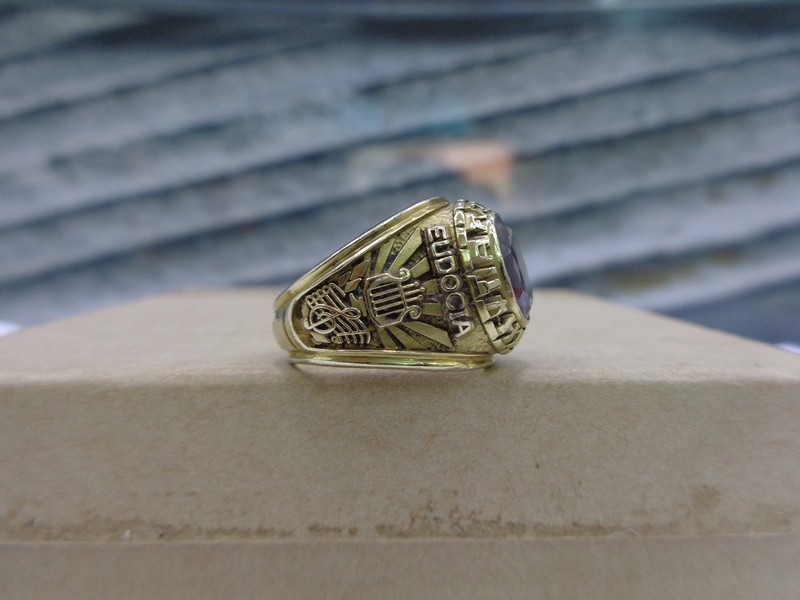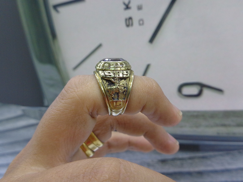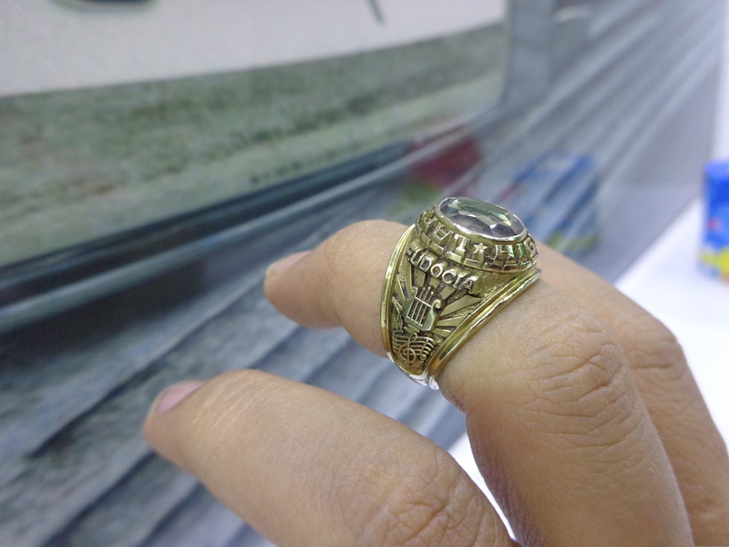 - Bên hông phải là hình ảnh người lính vung gươm cưỡi ngựa đang tiến về phía trước , 1989 là năm tốt nghiệp cũng là năm sản xuất nhẫn