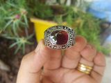 Nhẫn Mỹ Bowling Bạc XưaTrên cùng là hột màu đỏ huyết bồ câu với bề mặt và đáy trơn bóng , bao quanh bởi dòng chữ National bowling Association 300.- Hai bên hông nhẫn khắc...