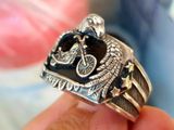 nhẫn mỹ harley Dividson- Nhẫn bản lớn lên tay thật hoành tráng với trên cùng là hột đá đen chính giữa có gắn hình ảnh 1 chiếc Moto harley dividson đẹp tuyệt vời. Bao trùm...