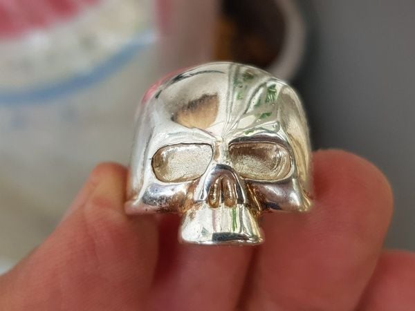 - nhẫn thiết kế chủ đạo là biểu tượng đầu lâu xương sọ, toàn thân nhẫn bằng bạc khối 925 (có mộc triện trong lòng nhẫn)