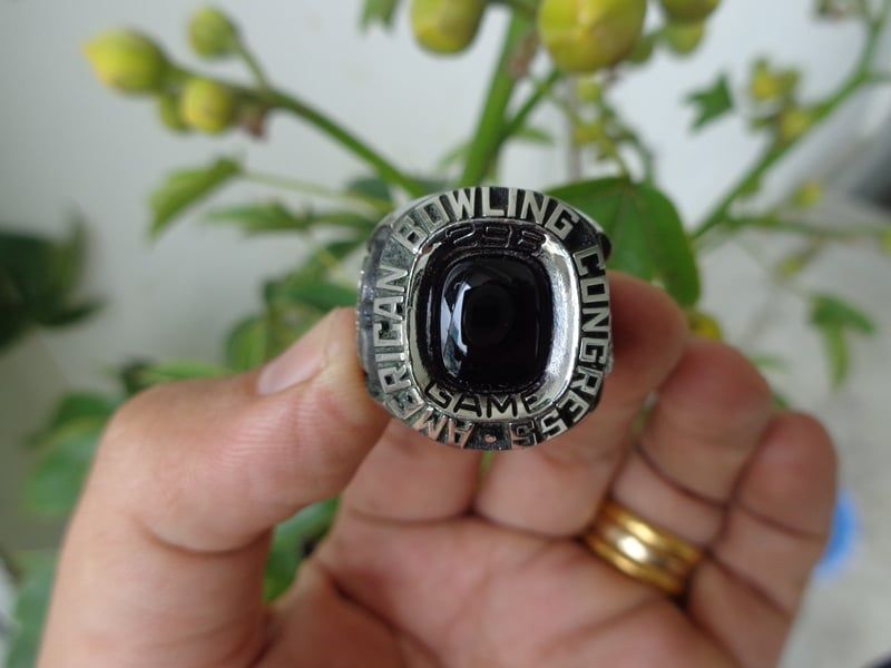 – bên hông phải nhẫn là hình người chơi thể thao Bowling