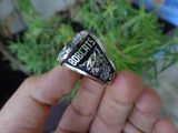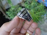 - Bên hông phải nhẫn khắc bộ mặt hung tợn của loài mèo bắc mỹ " Bobcats"với những đường nét rất sắc rất có hồn , nó được chọn làm linh vật của trường .