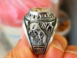 - Bên hông phải nhẫn là cả 1 bức tranh phong thủy nhiều chi tiết. Dưới khắc năm thành lập trường 1960. (1 chiếc nhẫn có tới 2 năm rất hiếm gặp)