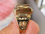 Bên hông phải nhẫn khắc chữ Ryan và các biểu tượng thể thao bóng rổ, bóng chày.