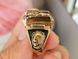 Bên hông trái nhẫn khắc họa hình cảnh Chúa Sơn Lâm cực đẹp sắc nét từng chi tiết.