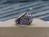 Nhẫn Mỹ Hột Xanh Tia– Trên cùng là hột xanh biển màu Sapphire đáy tia tuyệt đẹp, mặt hột vát cạnh lấp lánh. Bao quanh hột là tên trường Ellis Tech Shool (Harvard H ....