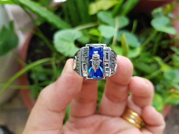 Nhẫn Mỹ Hột Xanh TiaTrên cùng là hột màu xanh biển có bề mặt trơn bóng dáy tia, chính giữa có gắn logo khắc tắt tên trường SMHS ( Saint Mary High school), Hai bên...