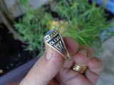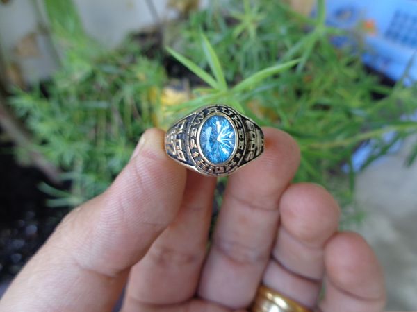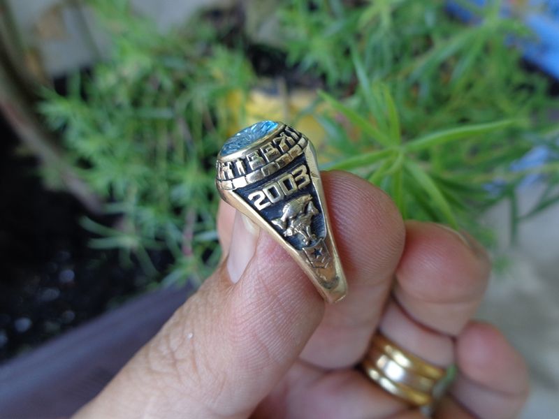 Nhẫn Mỹ Jostens 10K-2003Trên cùng là hột đá màu xanh aquamarine với bề mặt mài đa giác đáy tia sáng lấp lánh, bao quanh bởi tên trường Pewaukee High School.- Bên hông phải khắc năm...