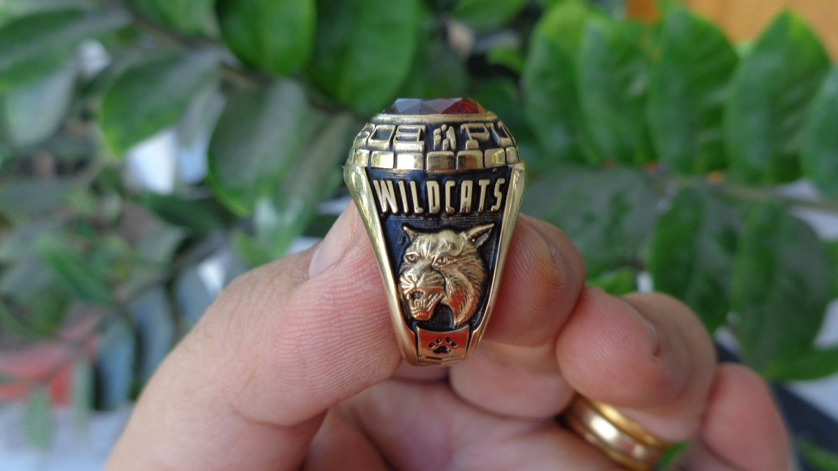 Nhẫn mỹ Jostens YLTM - nhẫn mỹ năm 2002- Trên cùng là hột đỏ màu Ruby với bề mặt và đáy mài đa giác long lanh, bao quanh hột là tên trường Boston Public- Bên...