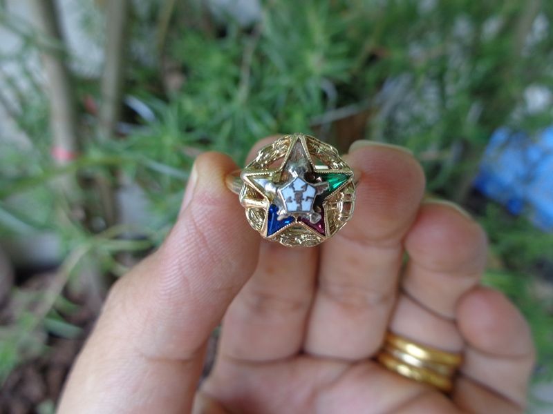 Mặt nhẫn được thiết kế kiểu ngôi sao 5 cánh và đính đá ngũ sắc , chính giữa là mặt men màu với những kí hiệu đặc trưng của Order of the Eastern Star là một khối Masonic phụ trợ mở cho cả nam giới và phụ nữ.
