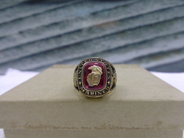 – Trên cùng là hột đỏ màu Ruby láng đẹp có gắn logo của quân đoàn Thủy Quân Lục Chiến , bao quanh hột là dòng chữ United States Marines