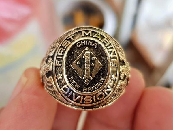 - Viền ngoài nhẫn là dòng chữ First Marine Division (sư đoàn 1 thủy quân lục chiến Hoa Kỳ)