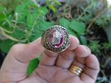 Nhẫn Mỹ Thủy Quân Lục Chiến Hợp Kim Trên cùng là hột đỏ màu Ruby láng đẹp có gắn logo của quân đoàn Thủy Quân Lục Chiến , bao quanh hột là dòng chữ United States...
