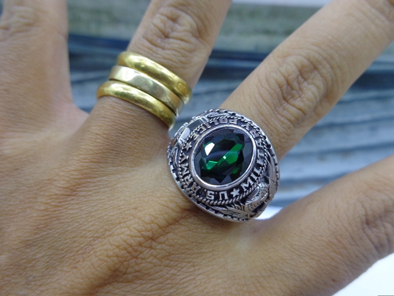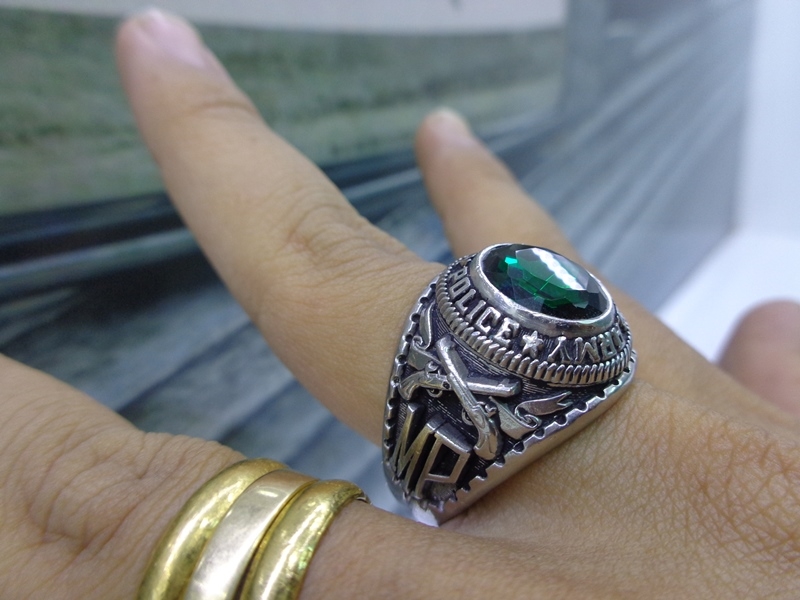 Nhẫn Mỹ U.S ARMY Military Police– Trên cùng là hột màu xanh Emeral ( xanh Heineken ) tuyệt đẹp với bề mặt và đáy mài đa giác long lanh, Bao quanh hột là dòng chữ...