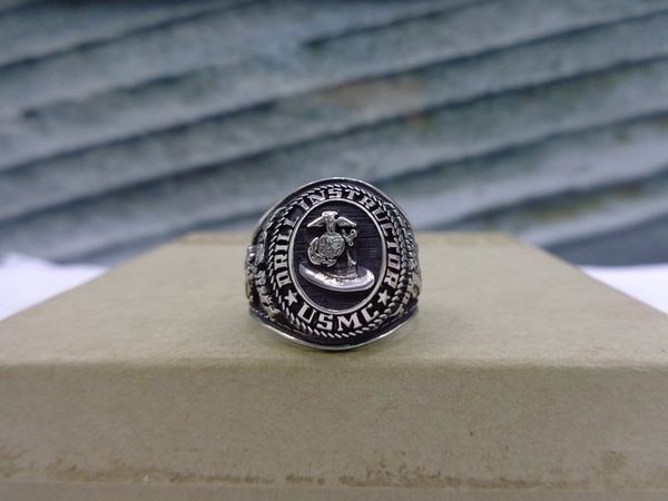 Nhẫn Mỹ USMC Drill Instructor–Trên cùng là hột đá đen tự nhiên có gắn logo Thủy Quân Lục Chiến bao quanh bởi dòng chữ USMC Drill Instructor. "Giảng viên Huấn luyện Quân sự"– Bên hông trái...
