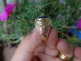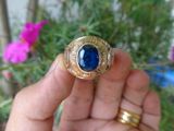 Nhẫn Mỹ Vàng 10K CollegeTrên cùng là hột màu xanh dương đậm có bề mặt và đáy mài đa giác lấp lánh, bao quanh bởi tên trường san jose state college- Hai bên hông nhẫn khắc...