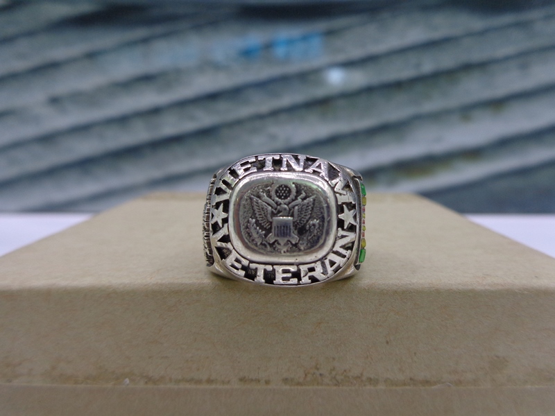 Nhẫn Mỹ Việt Nam VeteranTrên cùng là logo đại bàng Quốc Huy Hoa Kỳ sắc nét…bao quanh là dòng chữ VIET NAM Veteran. (Cựu Binh Mỹ tham gia chiến trường VN)-Bên hông phải nhẫn chạm...
