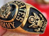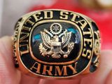 nhẫn mỹ xưa army bạc xưa áo vàngTrên cùng là hột đá đen BlackOxy láng bóng có gắn logo vàng đúc 10k cực dày hình đại bàng quốc huy Hoa Kỳ với 13 sao tượng trưng 13...