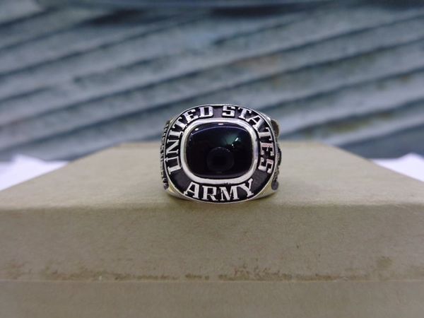 Nhẫn Mỹ Xưa Bạc Quân Đội– Trên cùng là hột đá đen tự nhiên BlackOxy đen láy .Bao quanh hột là dòng chữ United States Army– Bên hông trái là hình ảnh đại bàng tuyết...