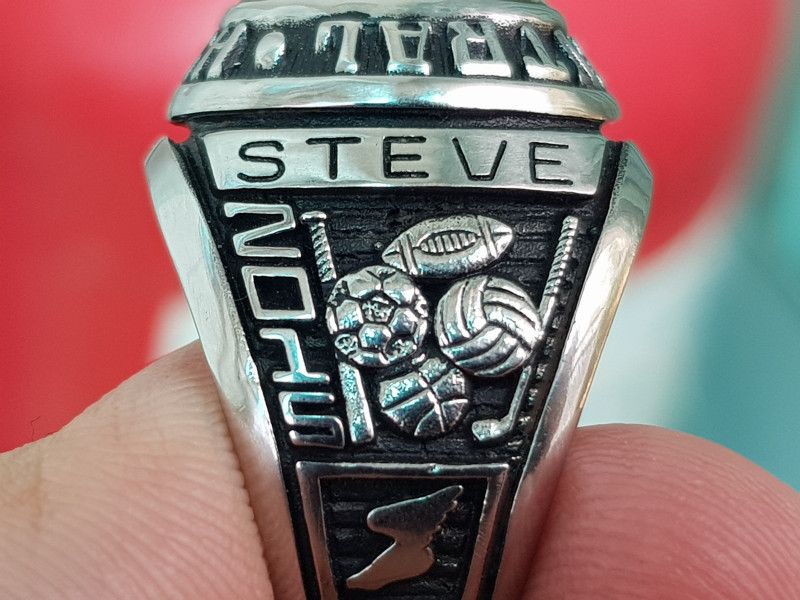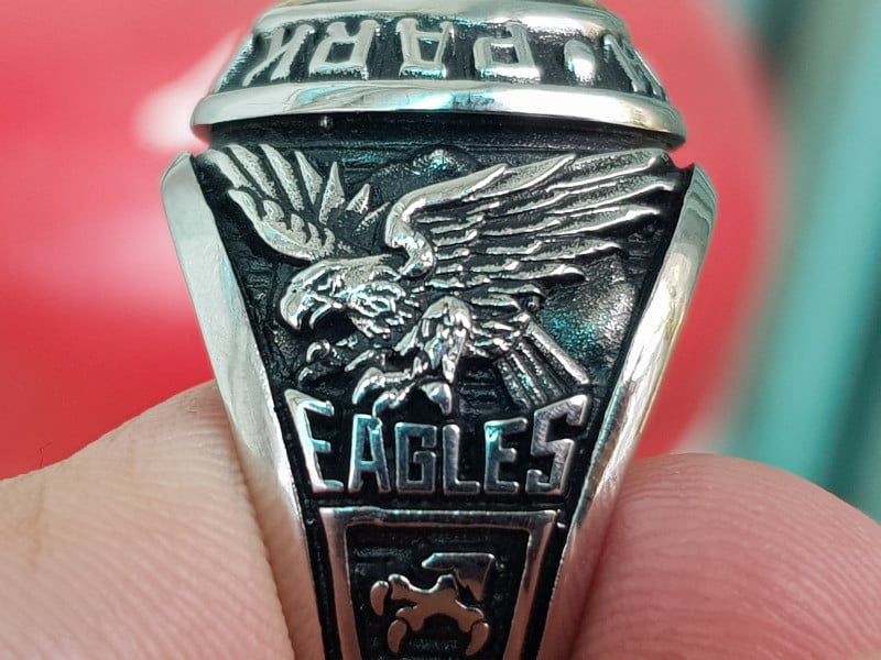 - Bên hông phải nhẫn khắc họa rõ nét hình ảnh dựng cụ thể thao bóng bầu dục, bóng chày cùng năm tốt nghiệp 2015.