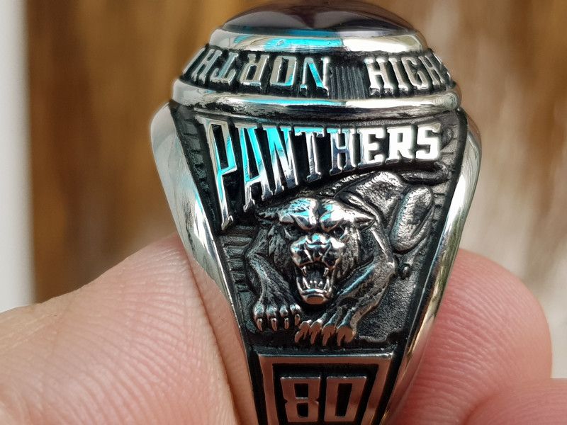 - bên hông trái nhẫn khắc họa hình ảnh chú hổ dũng mãnh và chữ Panthers