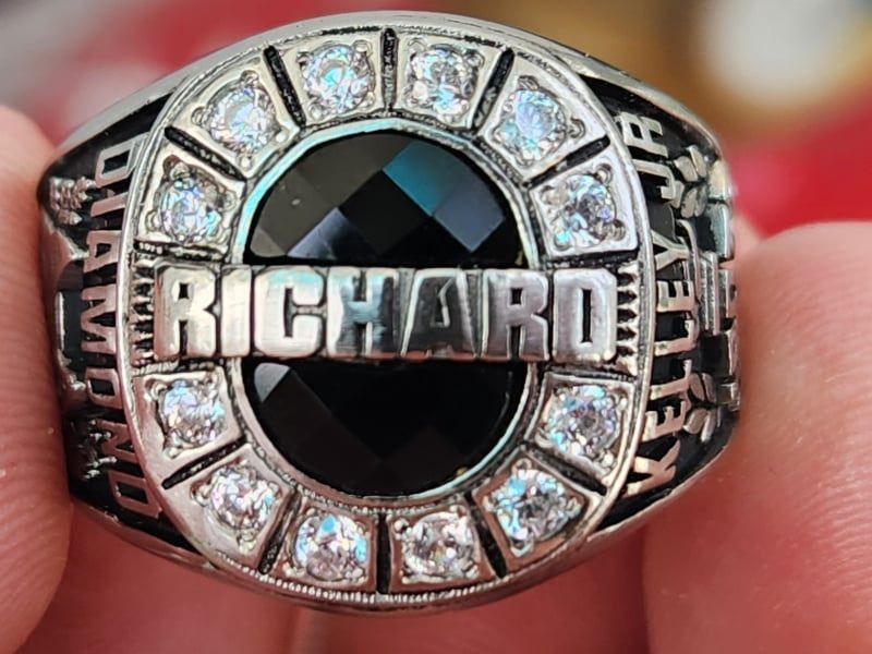 nhẫn mỹ xưa hợp kim Jostens full xoànTrên cùng là mặt nhẫn bản phrom thấp lịch lãm, chính giữa có gắn hột đá đen Blackoxy mài đa giác lấp lánh và đúc nổi chữ Richard. Bao...
