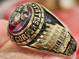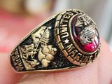 nhẫn mỹ xưa hợp kim marines Bal GtTrên cùng là hột đỏ màu Ruby láng đẹp gắn nổi logo của quân đoàn Thủy Quân Lục Chiến , bao quanh hột là dòng chữ United States Marine...