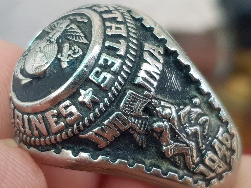 – Bên hông phải nhẫn khắc họa 3 người lính cắm cờ IWO JIMA trận Nhật Bản 1945