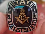 nhẫn mỹ xưa hợp kim masonic HJ ultTrên cùng là hột màu đỏ đô đậm với bề mặt trơn bóng,, mặt hột dát vàng biểu tượng Compa Êke chính giữa là chữ G (GOD) của hội quyền...