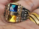 - Bên hông trái nhẫn khắc hình ảnh người chơi bóng bầu dục cũng bằng vàng miếng 10k được ốp vô thân nhẫn và ký hiệu #61.