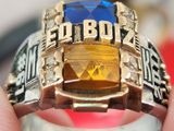nhẫn mỹ xưa hợp kim ốp vàng 10k hãng JostensTrên cùng là mặt nhẫn ốp vàng 10k phrom lớn hoành tráng được thiết kế ổ vuông lịch lãm gắn đá hột với hai màu đá xanh Sapphire và...