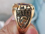 - bên hông trái nhẫn khắc họa hình ảnh dụng cụ chơi bóng chày và chữ Matt