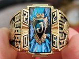nhẫn mỹ xưa hợp kim xi vàng GL YLZNtrên cùng là hột xanh biển đáy tia độc đáo, chính giữa hột có gắn Logo trường chữ J cực đẹp. hai bên thành nhẫn khắc năm tốt...