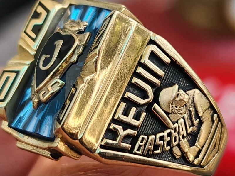 Bên hông phải nhẫn khắc chữ Kevin và hình ảnh người chơi bóng chày chi tiết từ sống mũi khuôn mặt,.