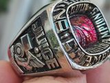 nhẫn mỹ xưa hợp kim jostens ltmTrên cùng là hột đỏ màu Ruby với bề mặt trơn bóng, hạt lanh lấp lánh hắt ánh ruby huyền ảo, bao quanh bởi dòng chữ Region 14 Naia Champions Claflin. Khắc...