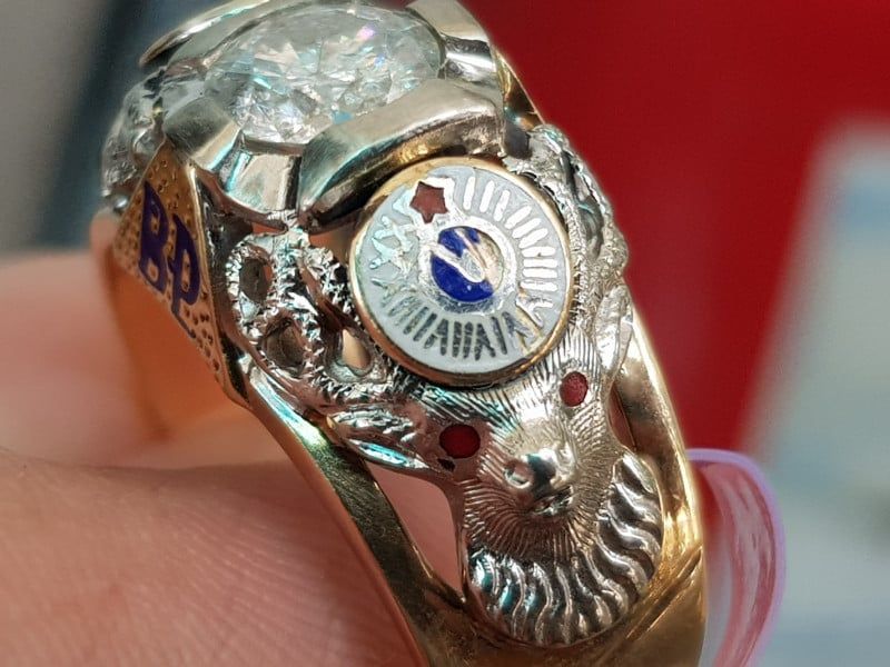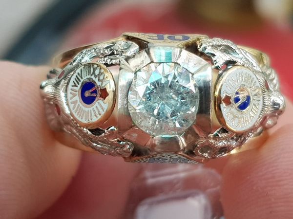 nhẫn mỹ xưa masonic BPOE vàng 10k xoàn thiên nhiên