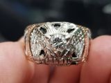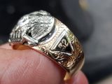 nhẫn mỹ xưa masonic vàng hồng 10k xoàn thiên nhiên